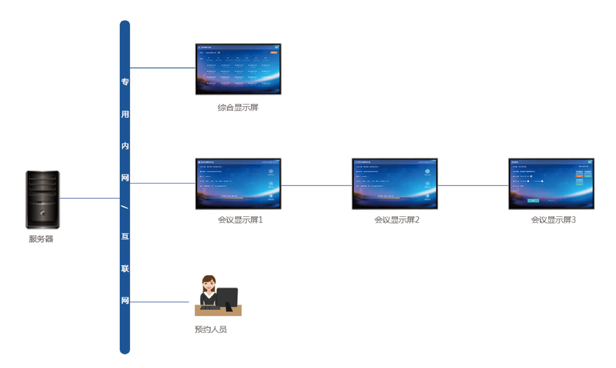 會(huì)議(yì)預定系統是(shì)以數(shù)遊多(duō)媒體(tǐ)信息發布系統為(wèi)基礎,為(wèi)各類會(huì)議 (yì)制(zhì)作(zuò)的(de)一(yī)款專門(mén)軟件(jiàn)。會(huì)議(yì)會(huì)議(yì)預定發布系統可(kě)以通(tōng)過平闆電(diàn)•視(shì)、顯示器(qì)、LED顯示屏、一(yī)體(tǐ)機(jī)等終端以多(duō)媒體(tǐπ)的(de)方式即時(shí)發布會(huì)議(yì)信息。可(kě)與客戶的(de)OA系統,門(mén)禁系統等對(duì•)接實現(xiàn)會(huì)議(yì)室資源的(de)有(yǒu)限管理(lǐ)和(hé)調度