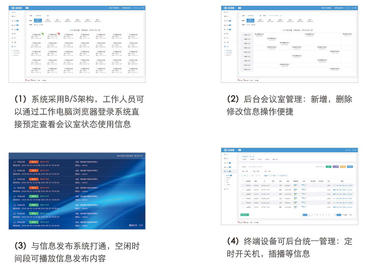 2:管理(lǐ)人(rén)員(yuán)可(kě)以通(tōng)過觸摸屏前端方便,便捷預約會(huì)議(yì)室