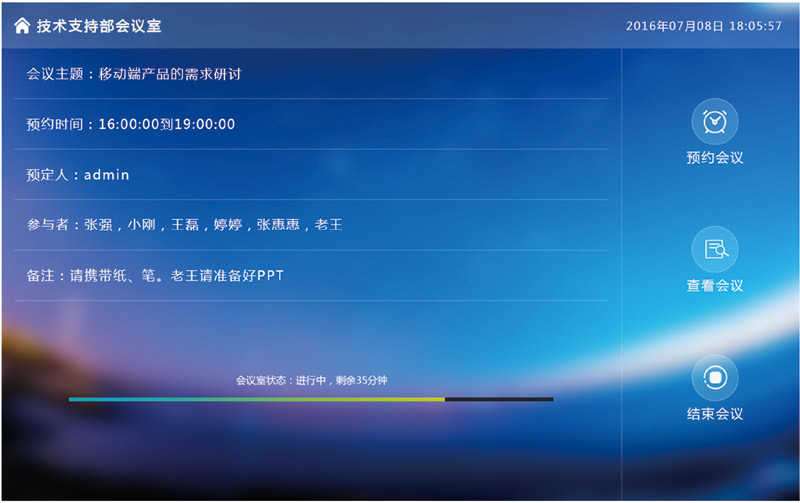 4:前端清晰展示會(huì)議(yì)使用(yòng)狀态與剩餘時(shí)間(jiān),美(měi)觀,大(dà)方