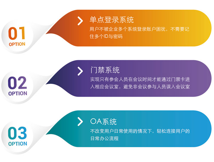 2:門(mén)禁系統,實現(xiàn)隻有(yǒu)參會(huì)人(rén)員(yuán)在會(huì)議(yì)時(shí)間(jiān)才£能(néng)通(tōng)過門(mén)禁卡進入相(xiàng)應會(huì)議(yì)室,避免非會(huì)議(yì$)參與人(rén)員(yuán)誤入會(huì)議(yì)室中